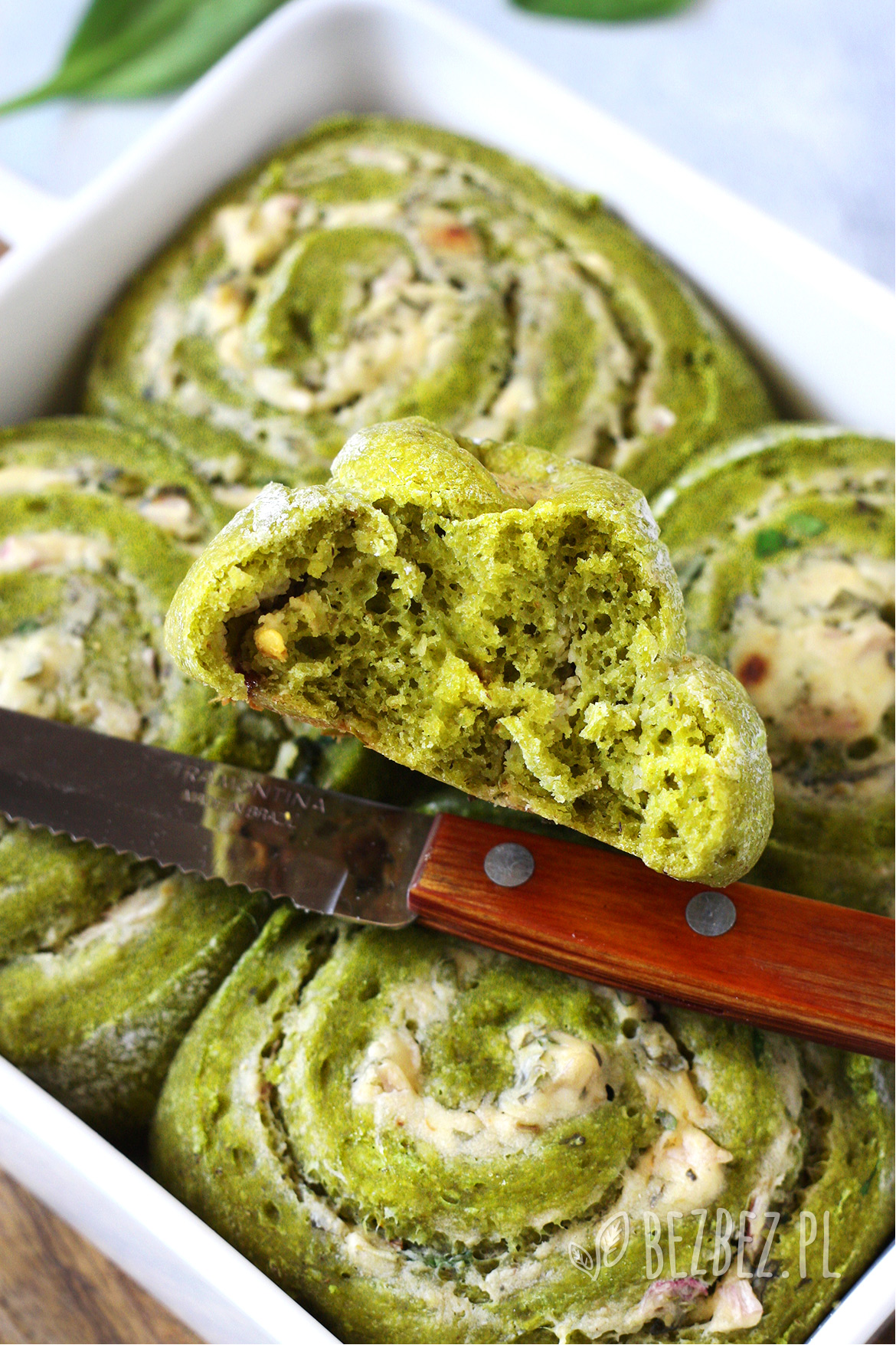 Te zielone bułeczki to wytrawna odsłona drożdżowych ślimaczków. Jeśli szukasz tych w wersji słodkiej, zerknij na przepis na bułeczki zawijane z rabarbarem. Możesz je przygotować z dowolnymi owocami. Znajdziesz tam również przepis na roślinny twarożek na bazie ciecierzycy i kaszy jaglanej, który można przygotować również na słono, doprawić czosnkiem, ziołami i wykorzystać również w tym przepisie. Jeśli nie chcesz kupować gotowej pasty do smarowania – warto przetestować.