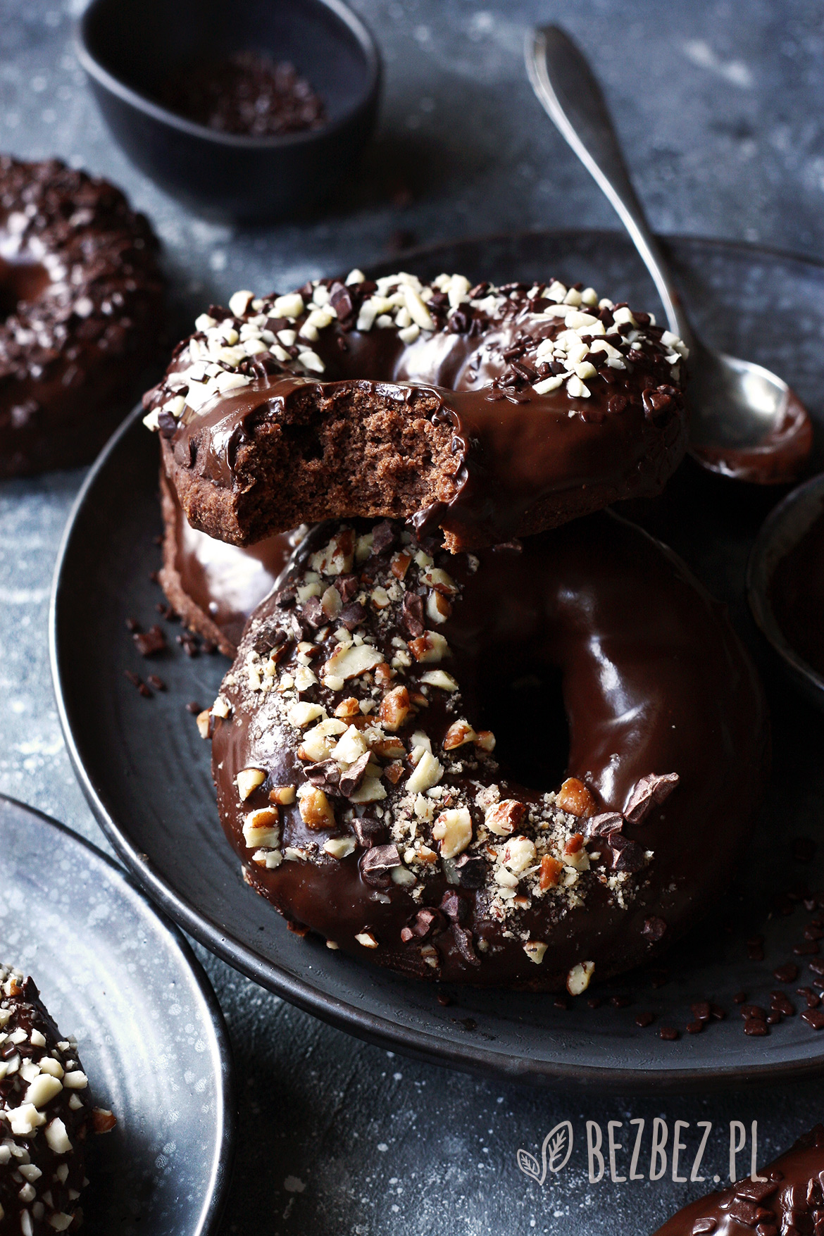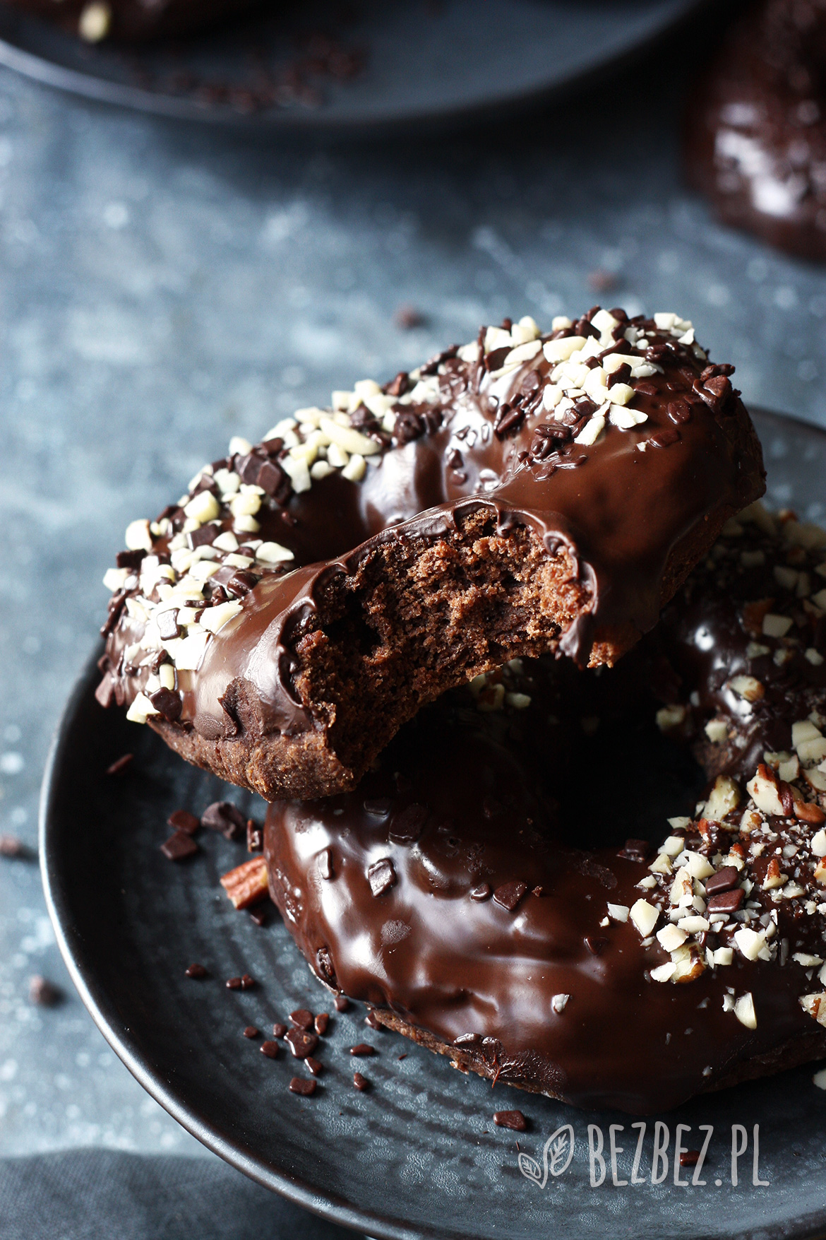 Bezglutenowe donuty czekoladowe, czyli pieczone pączki z dziurką, bez jaj i nabiału