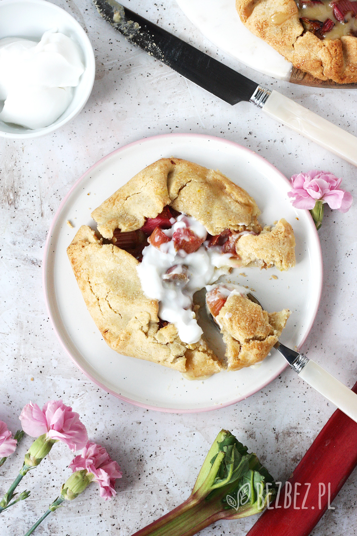Bezglutenowe mini tarty rustykalne z rabarbarem to wspaniały deser przywołujący letni czas. Podane na ciepło z lodami lub kleksem jogurtu kokosowego będą wspaniałym deserem.